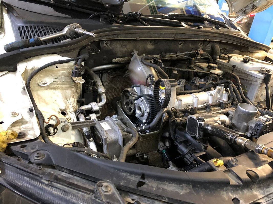 Оборвало ремень ГРМ, данный сервис оказался одним из ближайших где были готовы произвести замену и если все плохо - т.е. загнуло клапана, то так же произвести ремонт ГБЦ. Машину удалось отбуксировать в сервис только к вечеру, поэтому договорились начать ремонт в 10 утра следующего дня.
